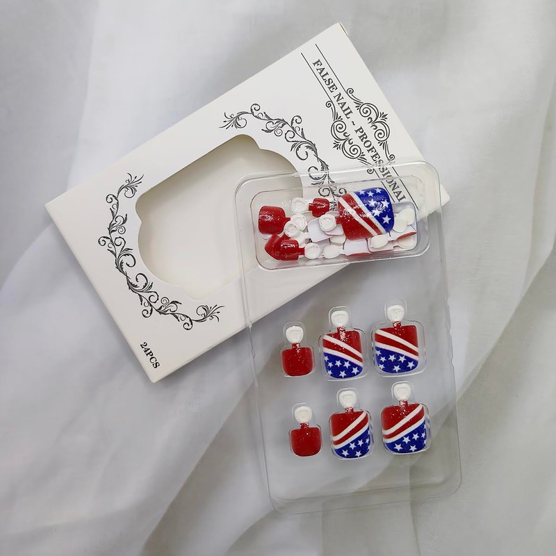 - Perfect Gift: These 4th of july patriotic stick on toenails are not only a great product for professionals and nail art learners to practice, but also a beautiful gift for wives, girlfriends, sisters, women and girls. Its effect is comparable to a nail salon.They will definitely be very satisfied.