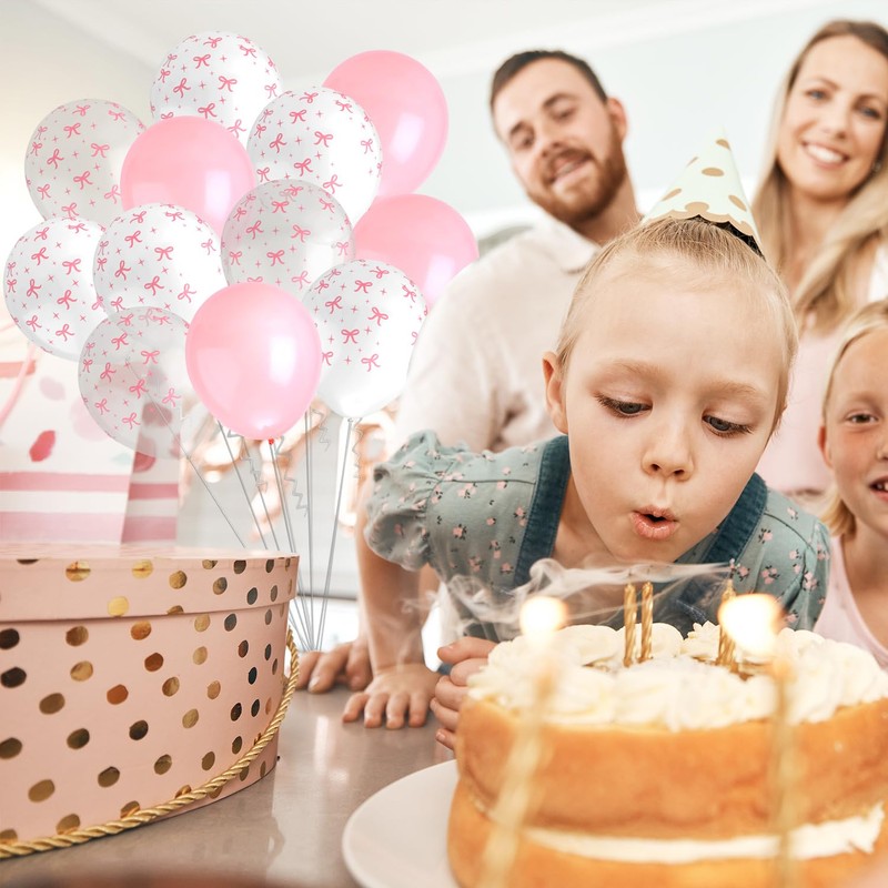 24pcs Latex Bow Balloons, 3 Styles Pink Bow Balloons Bow Birthday Balloons Bow Themed Party White Balloons for Birthday Wedding Graduation Baby Shower Party Supplies