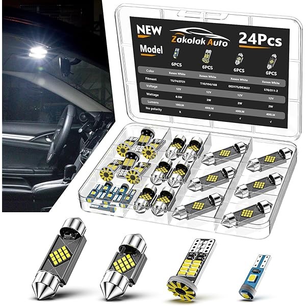 24PCS LED Interior Car Lights, Extremely Bright 6500K White LED Bulb Kit, Applicable to Dome Map Door Lights and Other Parts Replacement for Your Cars, to Help You See Inside The Car at Night