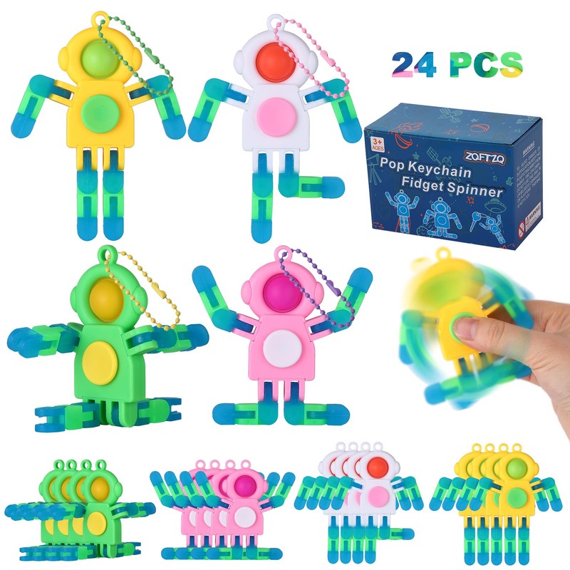24Pcs Pop Fidget Spinners,DIY Deformable Astronaut Fingertip Toys, Keychain Fidget Spinners Adults Toys,Glow in The Dark Party Favors,Sensory Toys Bulk for Kids Classroom Prizes,Christmas Toys