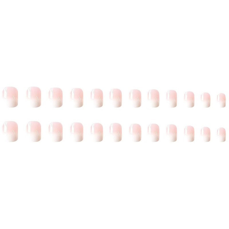 - Packaging: You will receive 24 short pink white gradient fake nails, 24 jelly glue, a small wooden stick for removing fake nails, and a nail file for polishing nails.