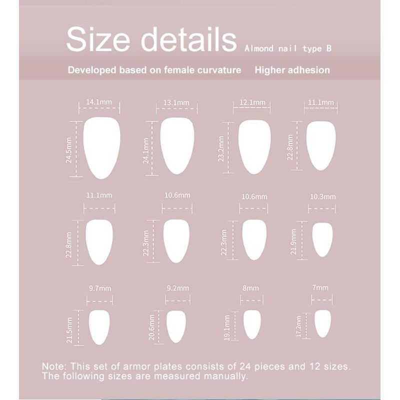 - 【Package Contents】- 24 Pcs Short Almond Press on Nails +1 Nail File + 24 Pcs Jelly Glue Stickers+1 alcohol cotton+1 wooden stick.(The durability of jelly glue is not as good as liquid glue, but it makes fake nails reusable. Please use suitable glue according to different scenes)