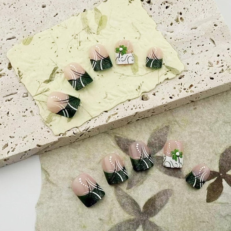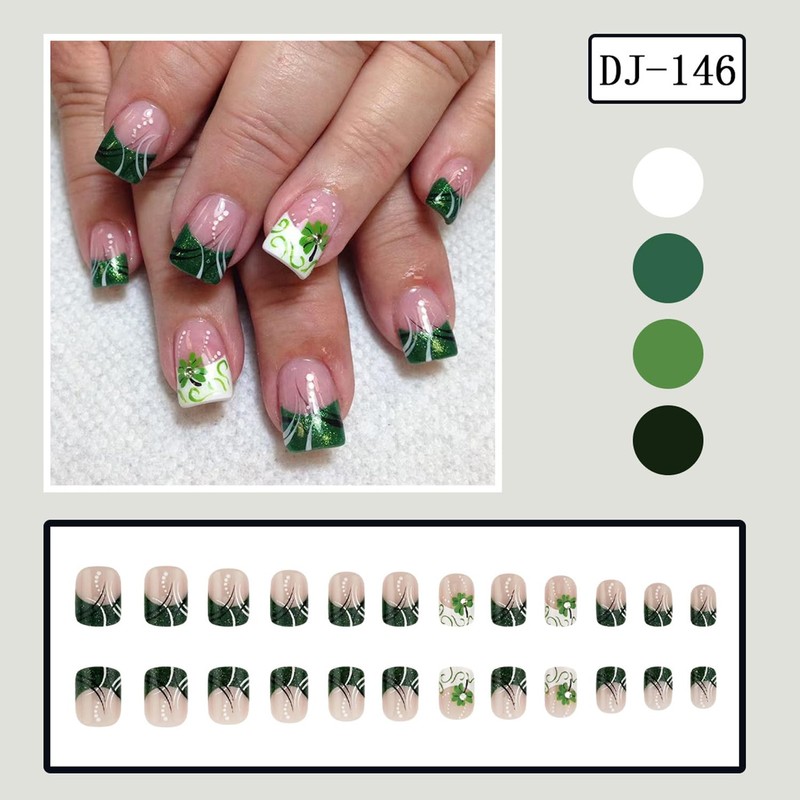 • ☘️Saint Patrick's Day Design:This irish fake nail features a classic shamrock element green design to make your nails look more noble and will give you a nice manicure experience.