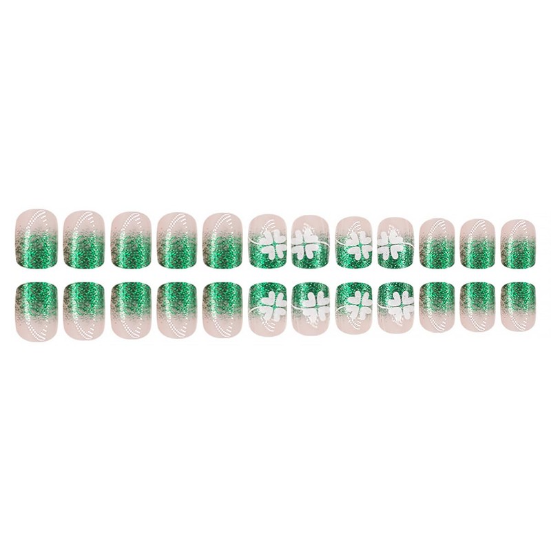 - St. Patrick's Day False Nails: Made with quality materials, our set of 24 short square fake nails feature a trendy white shamrock acrylic design in glossy,give 24 pcs jelly gel 1 wooden stick 1 nail file perfect for manicure decoration