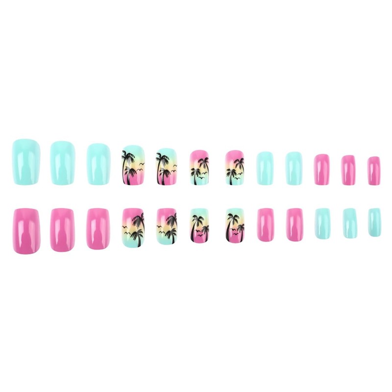 - Materials: Glossy summer false nails with palm tree designs are made from acrylic material, These short square acrylic nails are gentle for your body and nails, please use them with confidence