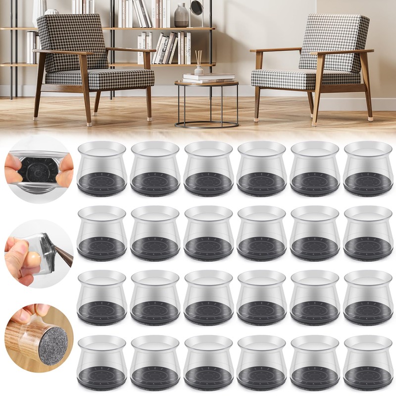 24PCS Upgraded Silicone Chair Leg Floor Protectors for Hardwood Floors, Furniture Sliders for Chair Legs, Felt Bottom Furniture Pads, Anti-Slip Round&Square Cap Covers to Scratch and Reduce Noise