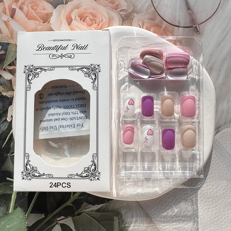 - 【Package Contains】This Valentine's press on nails heart with designs comes in a beautiful package that includes, 24pcs nail adhesive tabs, 1pc nail file, 1 alcohol cotton and 1pc wooden stick