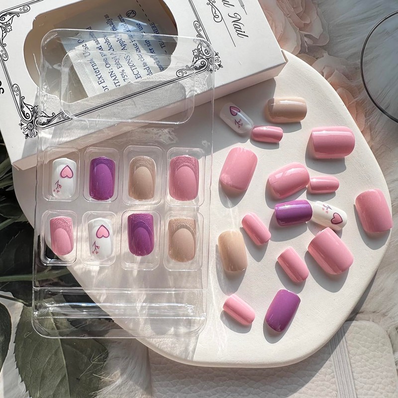 3.These Valentine's press on nails are designed according to the curvature of female's nails, with moderate thickness, natural fit, more natural effect, and comfortable to use.