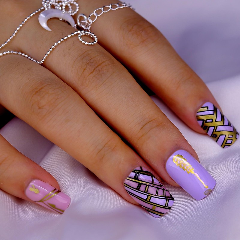 - Press on fake nails with design can make you get unique, beautiful, and fun manicures in minutes instead of waiting in line at nail salons. The package includes: 24 Fake nails, 1 nail file, 1 jelly gel, 1 cuticle stick, free file to trim any shape you like