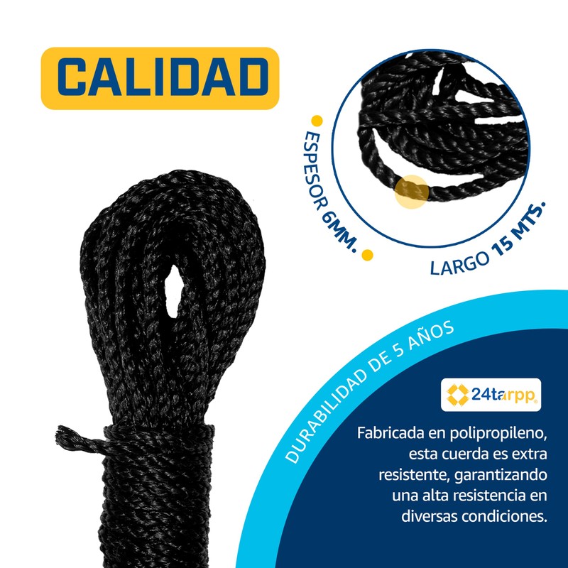 - MATERIAL | Fabricada con 100% polipropileno, esta soga es extra resistente, garantizando una durabilidad de 5 años y una alta resistencia en diversas condiciones.
