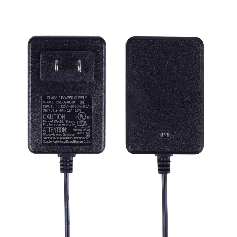 - Input 100-240VAC 50-60Hz 0.5A, Output 24V 800mA.
