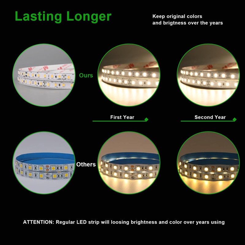 - [Widely Application] These strips are installed in a wide variety of applications including linear lighting, under cabinet lighting, coving lighting, backlighting, edge lighting, tasking lighting, living room lighting, kitchen island lighting, bedroom lighting etc