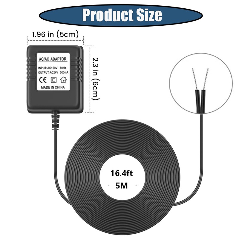 - Doorbell Wire Product Parameters: Doorbell transformer input AC 120V, 60Hz 0.2A,output AC 24V 500mA. able length is 16.4FT.