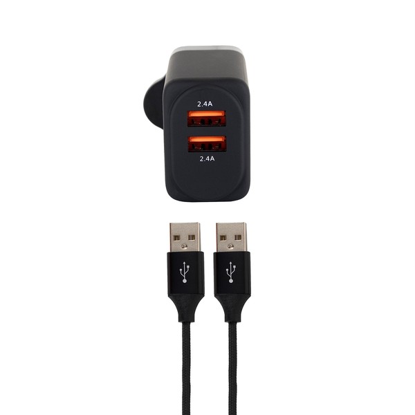 - Dual USB-A wall head charger.