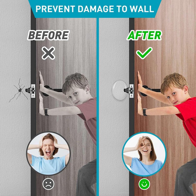 - Shock Absorbent Wall Protector: Our wall protector from door knobs keeps your walls protected from any handle, knob, or other item sticking out of the door. Our door stops for wall are made of premium soft, strong, silicone gel material. The elastic material can the damage to your walls by softening the impact. Say goodbye to the dents . These door handle protector for wall are great for households with children and pets.