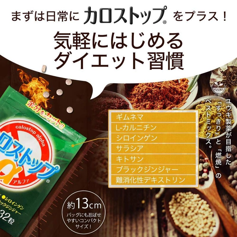 - 「カロストップα」は、7種類のダイエット応援素材をバランス配合!コッテリしたものや甘いものなど大好きな方にオススメです。[国内製造品]