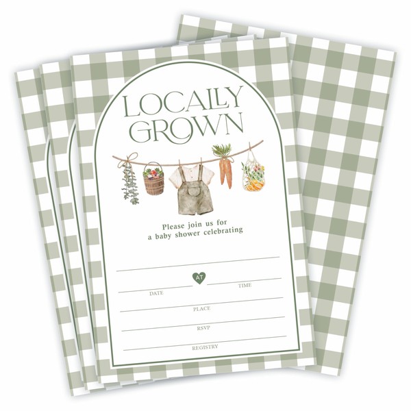 25 Baby Shower Invitation Cards With Envelopes, Sage Green Plaids Arch Locally Grown Double-Sided Fill In Style Invitation Set For Baby Announcement, Gender Reveal Party Favor & Decorations - D01