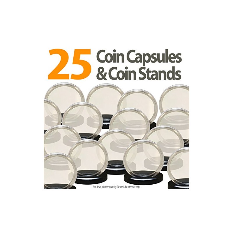 - Lot of 25 DIRECT FIT AIRTIGHT COIN CAPSULES and 25 COIN STANDS