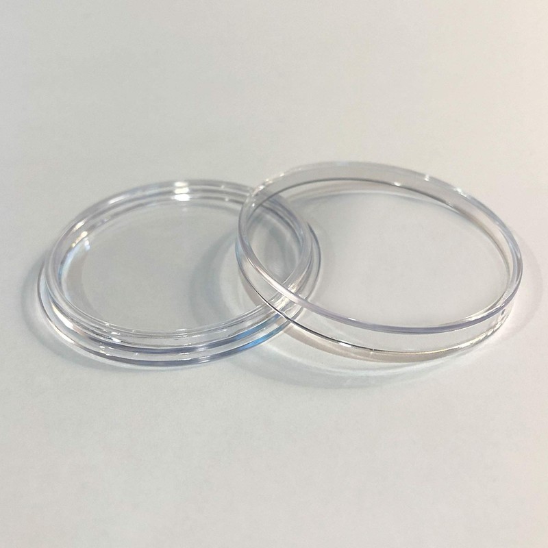 - Capsules are manufactured (injection molded) using acrylic plastic with a non-yellowing agent, producing a two piece, snap together, friction fit cover and base.