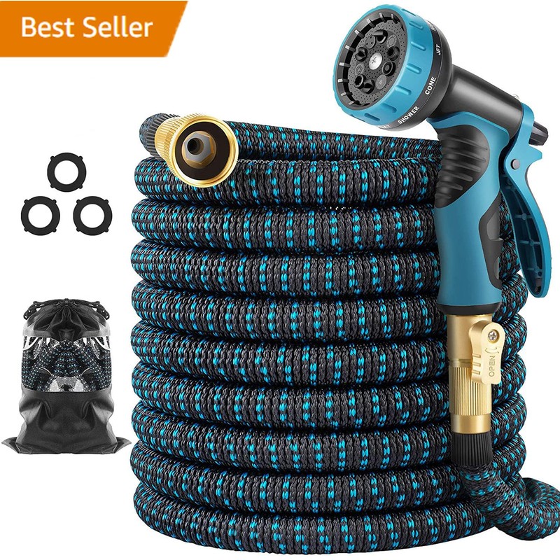 - 10 FUNCTION SPRAYING NOZZLE: Included with the water hose is a high-quality, 10-pattern rotating nozzle. Our garden expanding hose set delivers smart solutions to satisfy all your watering and cleaning needs. The sprayer boasts non-slip and comfortable grip and rotating bezel for choosing 8spray patterns: Jet, Shower, Angle, Center, Mist, Soaker and Flat
