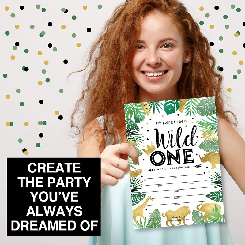 - Impress your guests; Your guests and friends are going to love getting invited to your unique party with these exclusive one of a kind african gold and green wildlife invitations! These are perfect for parties for a boy or girl children turning one, 2, 3, 4, 5, 6, 7, 8, 9 or 10 years old or a baby 1st or first bday too! You could even use them for a teen or adult party as well!