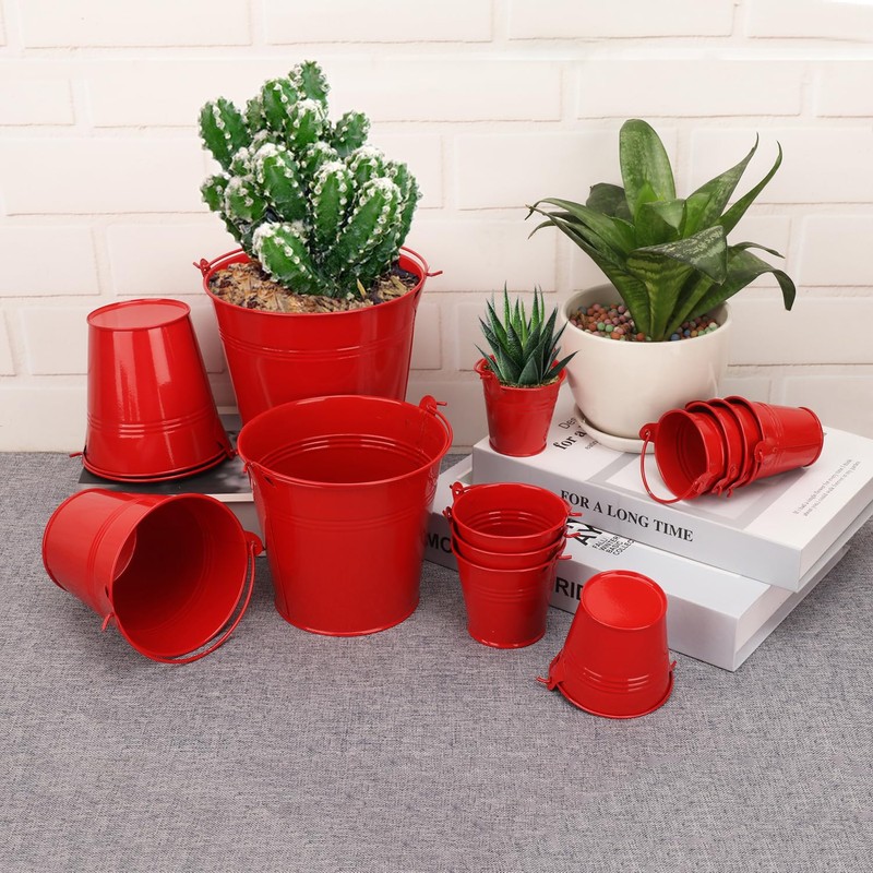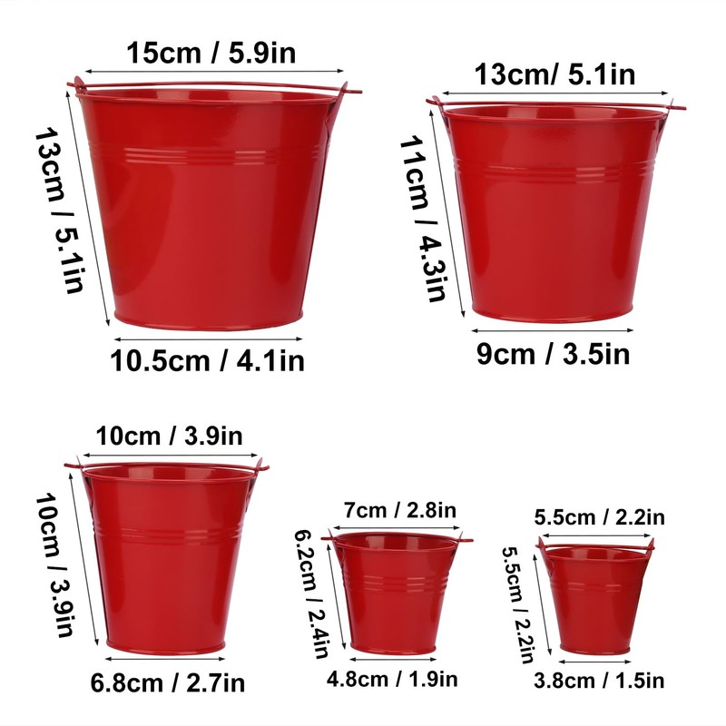 25 Pack 2.16/2.76/4 / 5.12/5.9 inch Red Iron Pail, Metal Buckets with Handle, Easter Bucket,Pencil Holder and Flower Pots, Used to Carry, Store, or Even Plant, by GENHAKON.