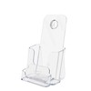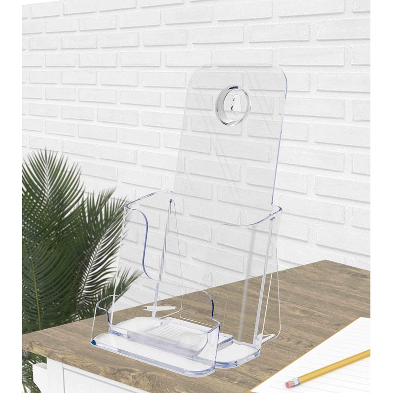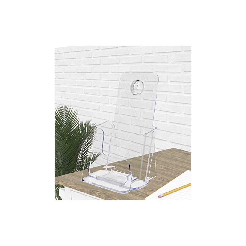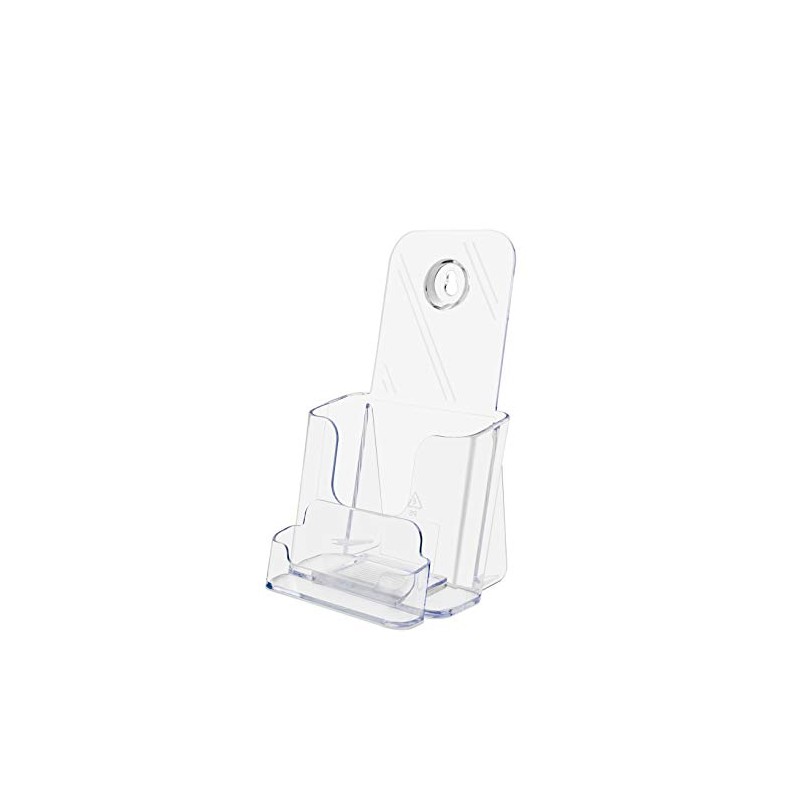 - Perfect slant back countertop or hanging advertising display stand with brochure and business card pockets. Holds 4"W trifold brochures and 3.5"W business cards. Proudly made with premium high quality plastic