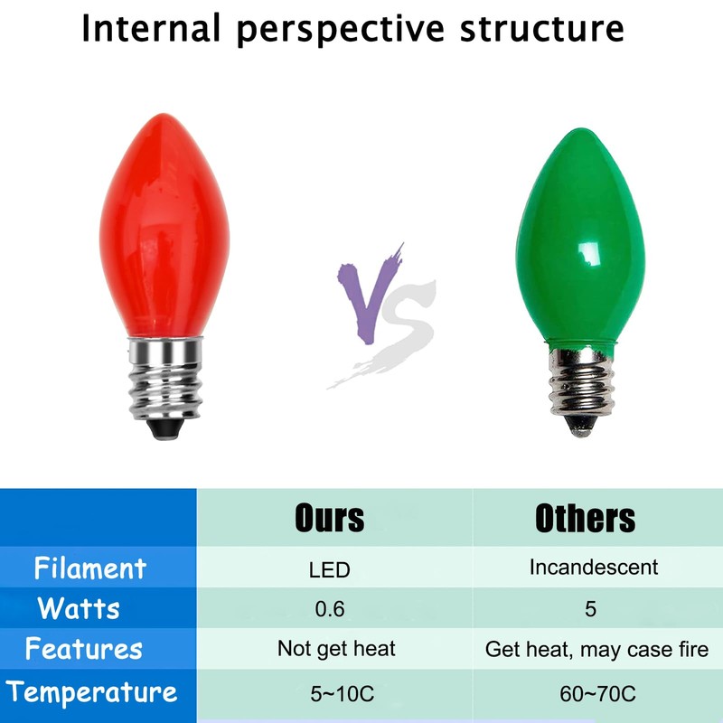 Easy Installation: Designed to fit standard C7 sockets, these bulbs are a breeze to install. Simply screw them in, and your holiday lighting will be ready in no time.