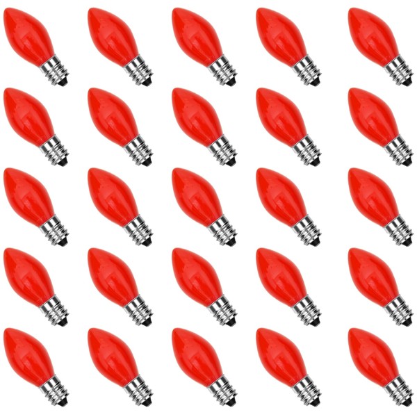 Get your home ready for the holidays with C7 LED Red Christmas Light Bulbs. These bulbs will infuse your decor with the magic of the season. Add a touch of holiday magic to your decorations with C7 LED Red Christmas Light Bulbs. Order your 25-pack now and make your holiday season extra special