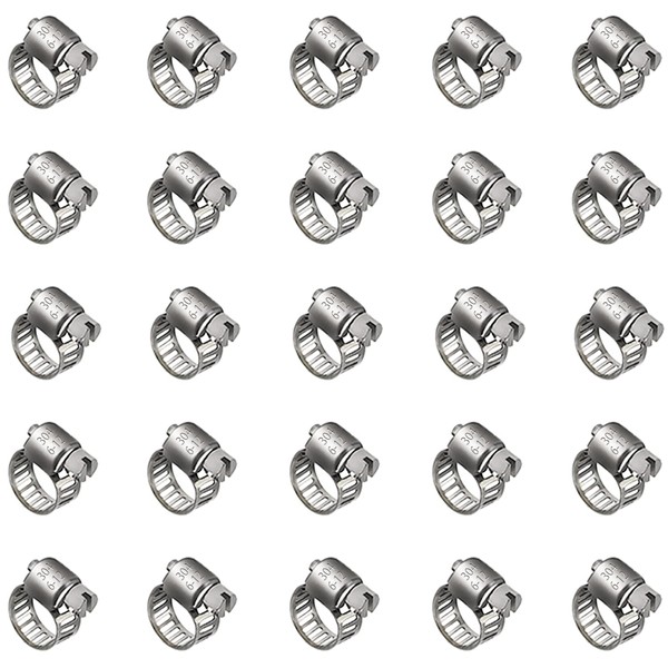 25 Pack Stainless Steel Hose Clamps, 1/4 inch to 1/2 inch Worm Gear Metal Hose Clamps for Pipe, Dryer Repair, Tubing and Fuel Line