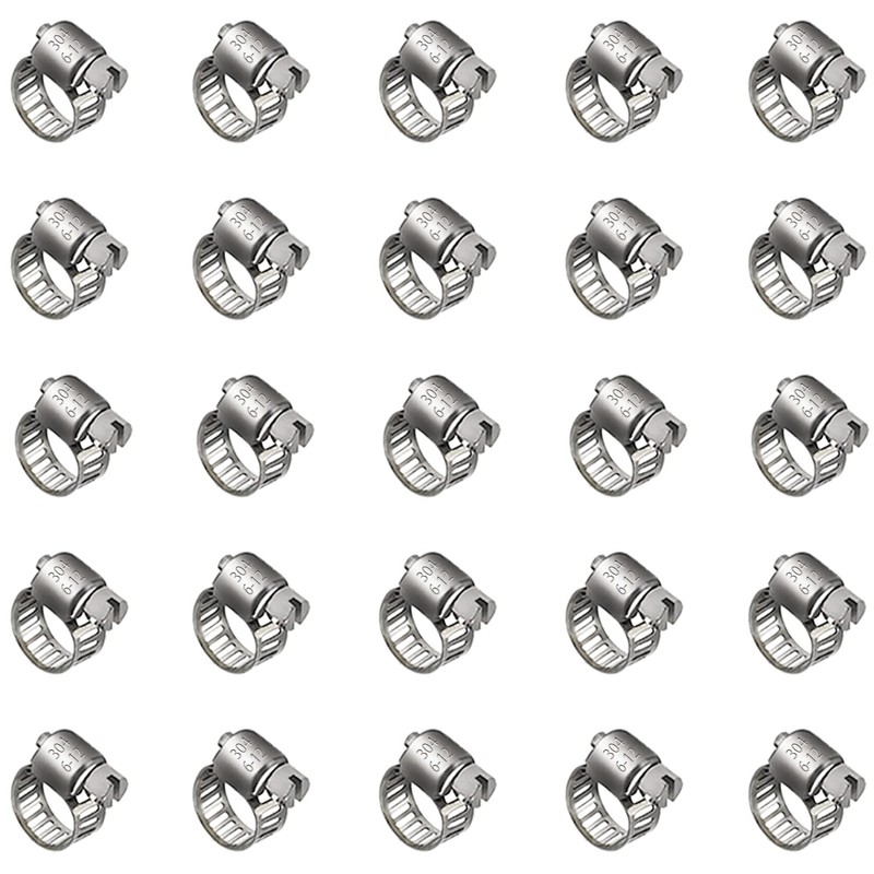 Qizpcer 25 Pcs 304 stainless steel adjustable worm gear hose clamps.