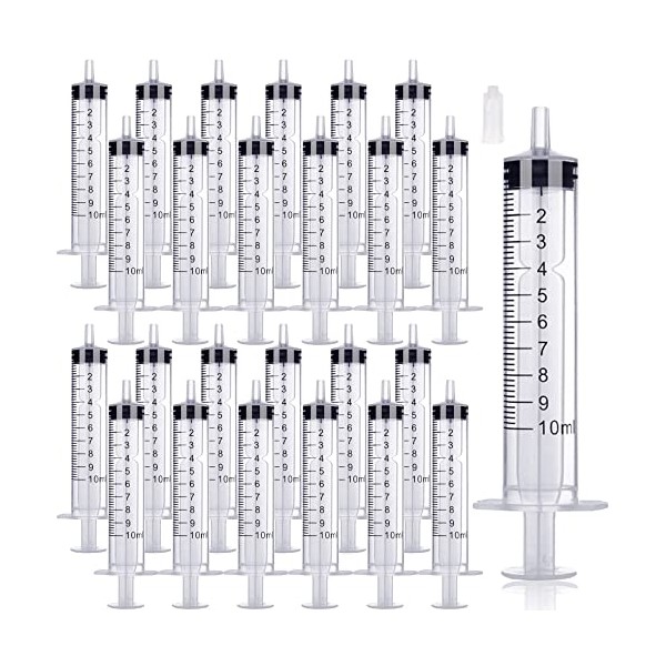 • Package contents: you will receive 25 packs 10 ml plastic syringe for Liquid with measurement and tip cap, enough for use or replacement
