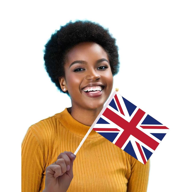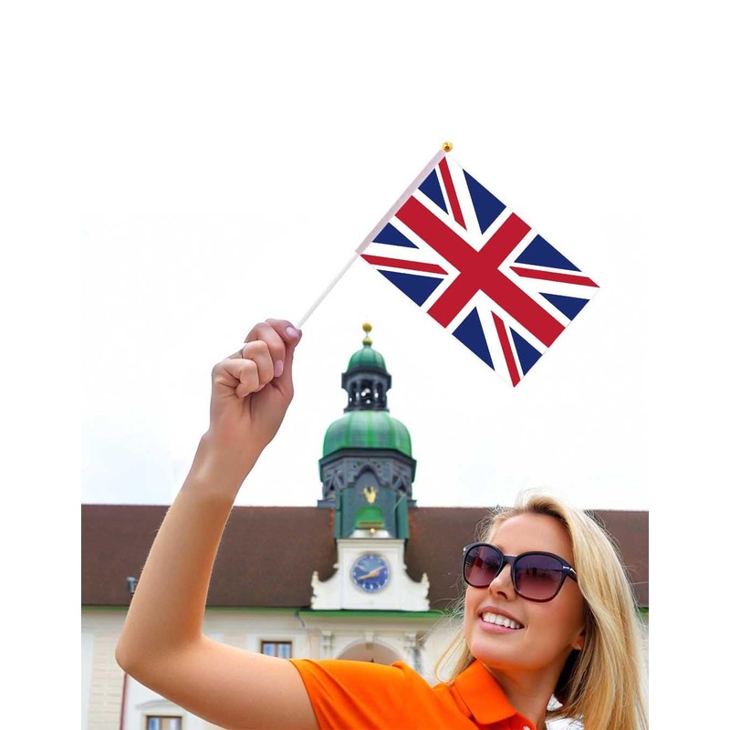 25 Packs Small Britain Flags on Handheld Stick,Miniature English British Flag for Outside,4x6 Inch Mini Hand Held Banner with Golden Topper,Patriotic Decorations