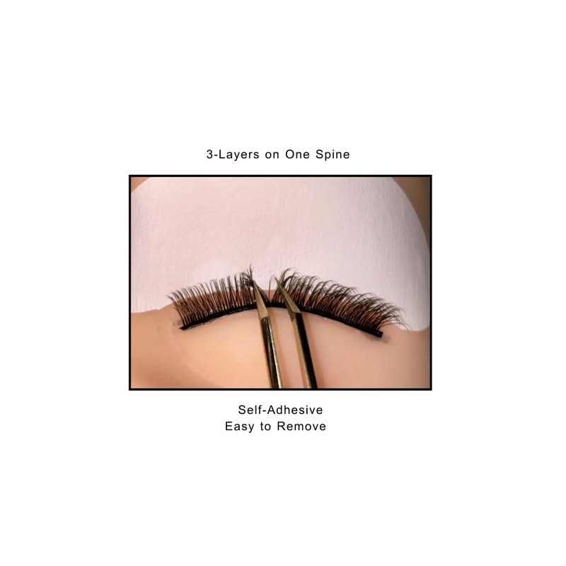 Exclusive 3-layered training lashes for lash extensions, featuring a carefully crafted combination of three lash lengths (6mm, 7mm, and 8mm). These lashes are designed to provide a realistic and intricate effect, ideal for professionals looking to enhance their lash extension skills. Each strip features three layers of lashes, allowing for a more detailed and dynamic application that mimics the natural variation in lash lengths. Superb for perfecting technique, transitioning from mannequin to human models, and mastering the art of volume and placement. This unique, never-before-sold training tool ensures effortless application with a self-adhesive design, making it easier than ever to practice and perfect your skills. Elevate your lash extension expertise with this must-have, innovative training lash set, tailored to help you achieve flawless results every time.