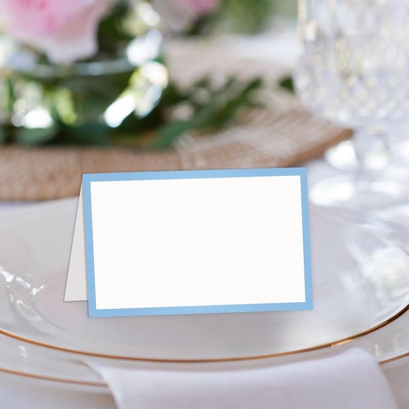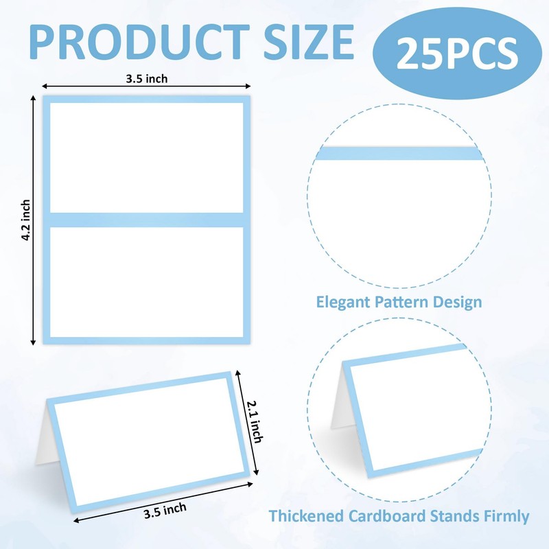 25 Pcs Dusty Blue Border Place Cards, Blank Tent Name Cards for Food Buffet, Dinner Party, Wedding Reception, Bridal Shower Table Setting -01