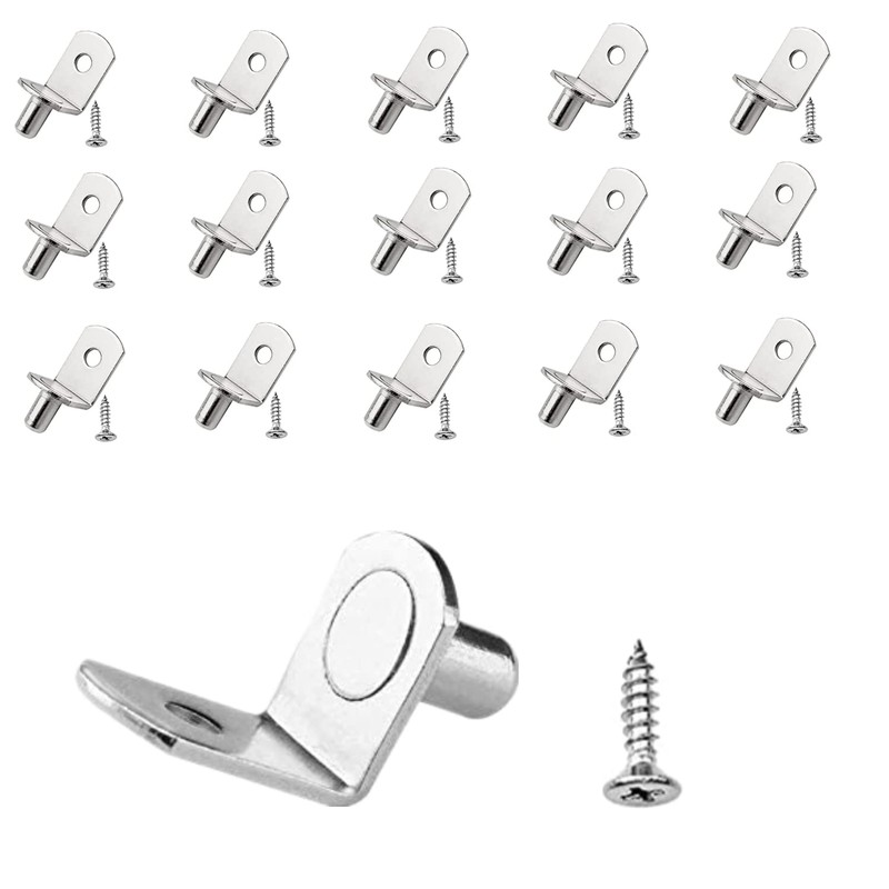 25 Pcs Glass Shelf Support Nails 6mm L-Shaped Support Pegs Furniture Cabinet Closet Shelf Pin Bracket Pegs with Hole for Cabinet Kitchen Furniture