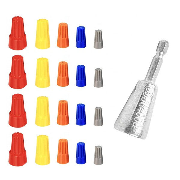 • What you will get - 25 pcs wire nuts and 1 pc silvery wire nut twiter for drill (5pcs grey, 5pcs blue, 5pcs orange, 5pcs yellow, 5pcs red).