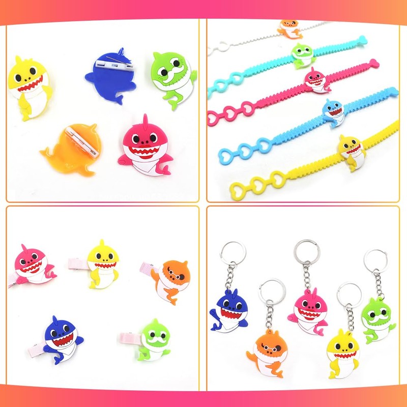 25 pieces shark key ring bracelet rings, hair clip brooch set, cute shark pendant, birthday party supplies, gift for boys girls children