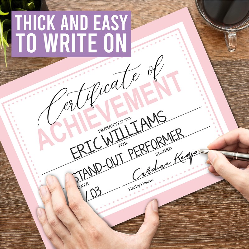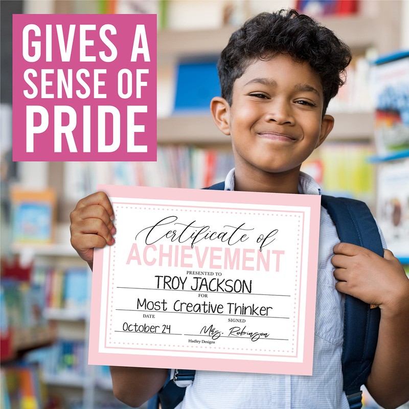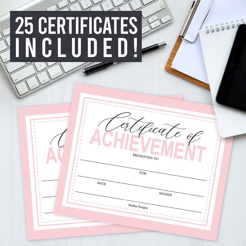 - Recognize Great Performance; You'll receive 25 8x10" awards certificates, which is the ideal amount for any office, classroom or sports team; These blush pink award certificates for students and adults show individuals that hard work pays off