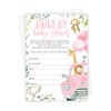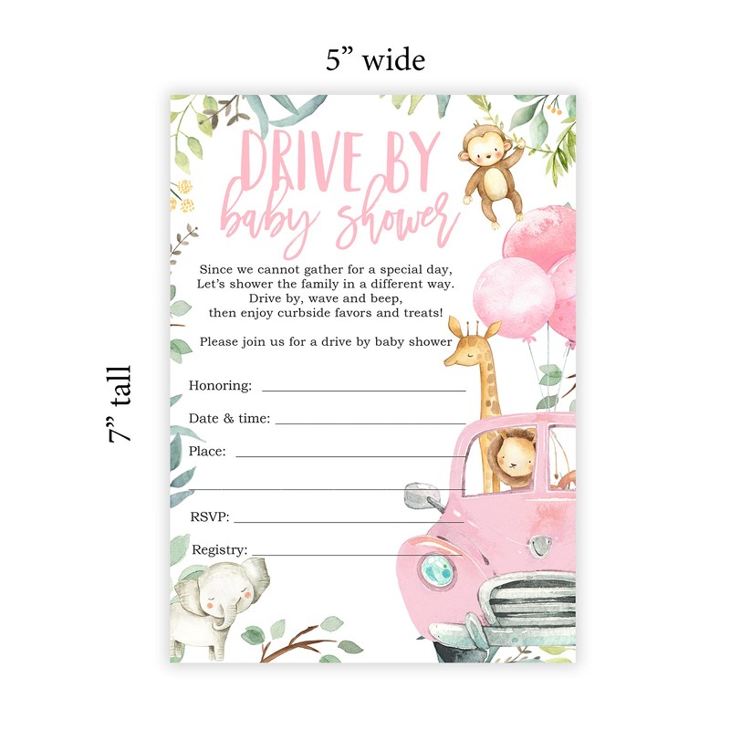 25 Safari Animal Drive By Baby Shower Invitations for a Girl with White Envelopes - 5x7 Fill In The Blank Jungle Theme Printed on Card Stock - Elephant Giraffe Monkey