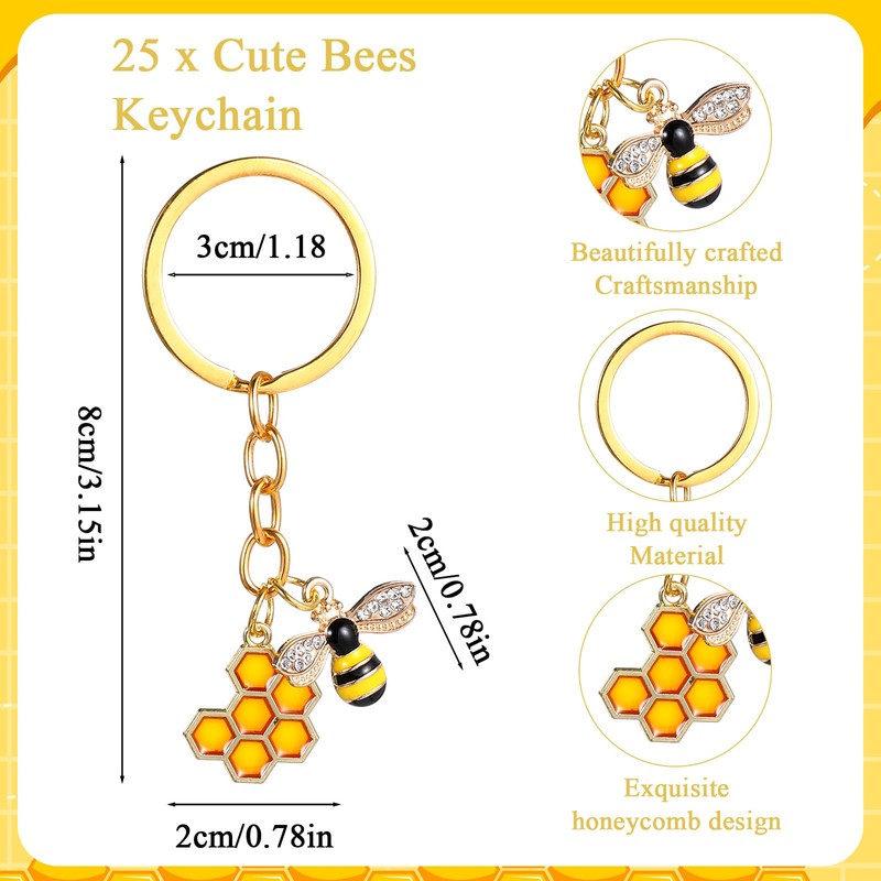- 【Reliable material】The bees in our gift set are made of zinc alloy, which is smooth, safe and durable; the hard-working bee keychain charm is not only cute and exquisite, but also durable and not easy to break, deform and fade, maintaining its charming smile and vibrant design.