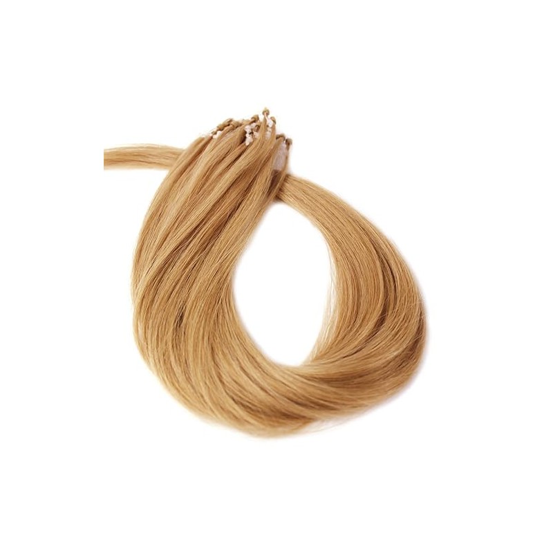 25 Strands 22" Long Micro Loop Ring Beads I Tip Indian Remy Human Hair Extensions 0.8g Each #12 Dark Blonde