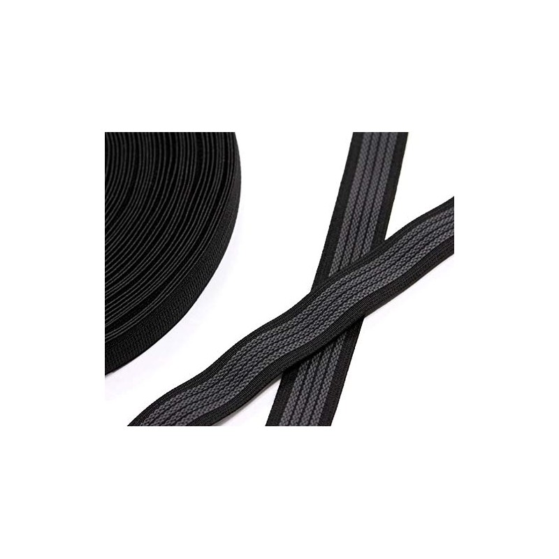 25 Yards of 1" Elastic with Gripping Rubber, Black with Gray