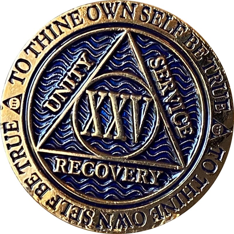 25 Year AA Medallion Dusty Blue Color Gold Plated Chip XXV