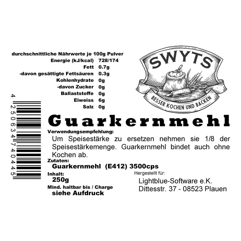 250 g Guar Gum (E412) Binding Agent with 3500 cps Thickener for Ice Cream, Desserts, Sauces, Jam, Baking - Become a Professional in Your Kitchen with the Quality of SWYTS - Minimum 12 Months MHD