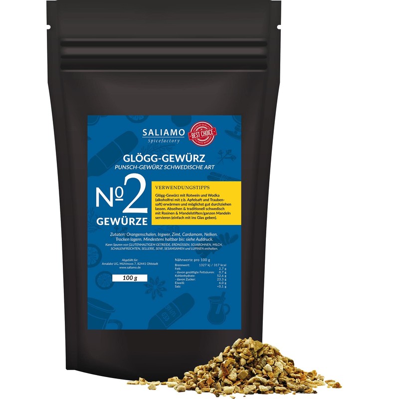 250 g Mulled Wine Spice, Children's Punch, Punch Spice Swedish Style "Glögg", with Orange Peel, Ginger, Cinnamon, Cardamom and Cloves, Mulled Wine Easy to Make Yourself Saliamo