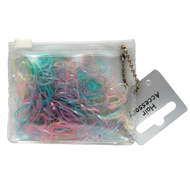 - Pack of 250 mini elastic colourful pastel colours (pink, yellow, blue, purple)