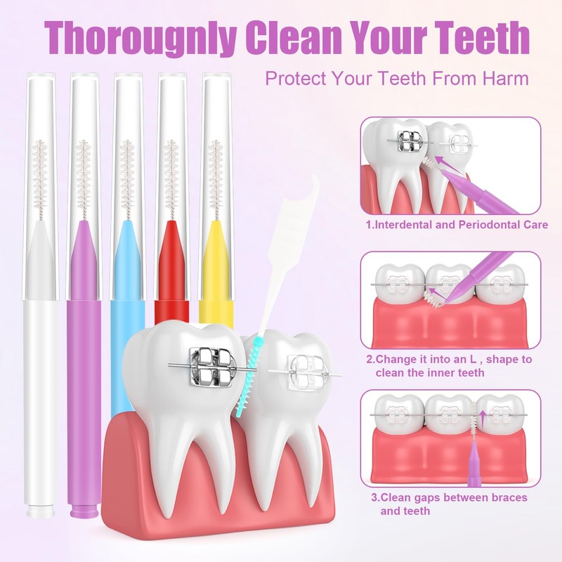 - Package Content: You will receive 250 pieces of tooth cleaning tools. 50 interdental brushes in 5 colors, including white, yellow, purple, blue and red and 200 interdental toothpicks. And all these tools are packed in a plastic box. Sufficient quantity will meet your daily use.