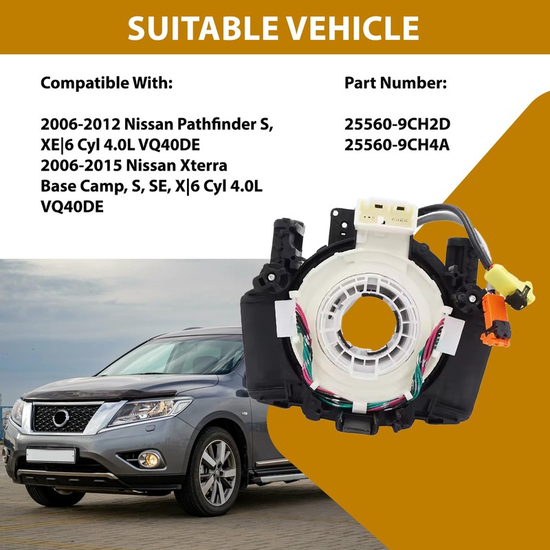 - Perfect Compatibility: The 25560-9CH2D is a direct OEM replacement for 2006-2012 Nissan Pathfinder S, XE|6 Cyl 4.0L VQ40DE and 2006-2015 Nissan Xterra Base Camp, S, SE, X|6 Cyl 4.0L VQ40DE.