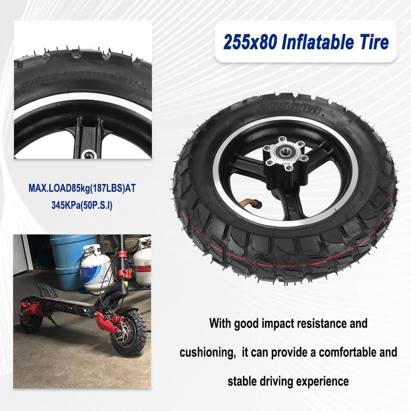 - Application: This 255x80 Tire with Hub fits for electric scooters / E-Bike / Mini Motor / Dirt Bike / Pit Bike / Motorized Scooter / Air Cushion Plates / Balanced Driving Bicycle, such as for the Nanrobot / Varla Eagle / Kaabo Wolf Warrior / Apollo / Zero electric scooter and so on, perfect for replacing worn or old tires